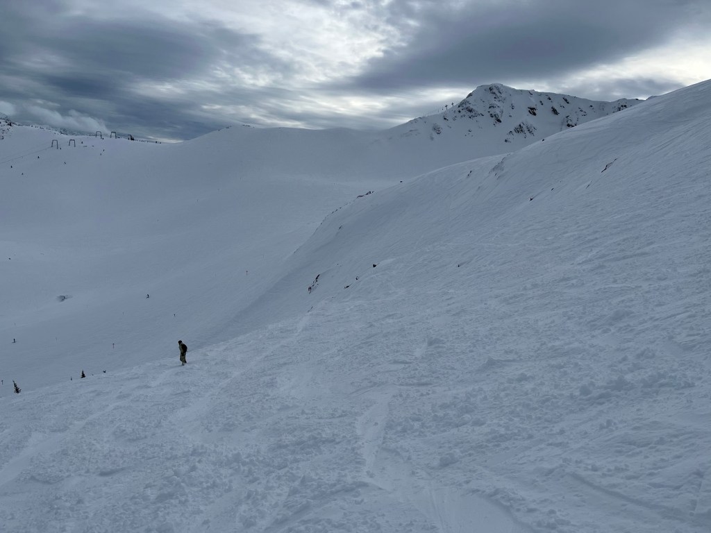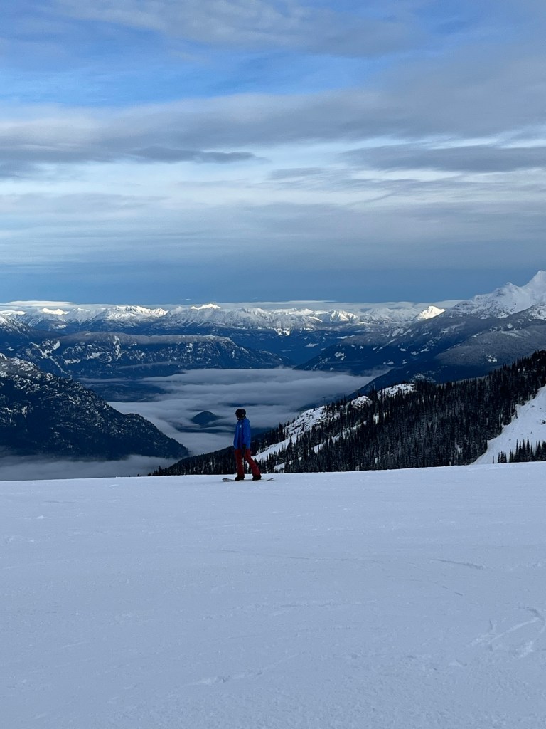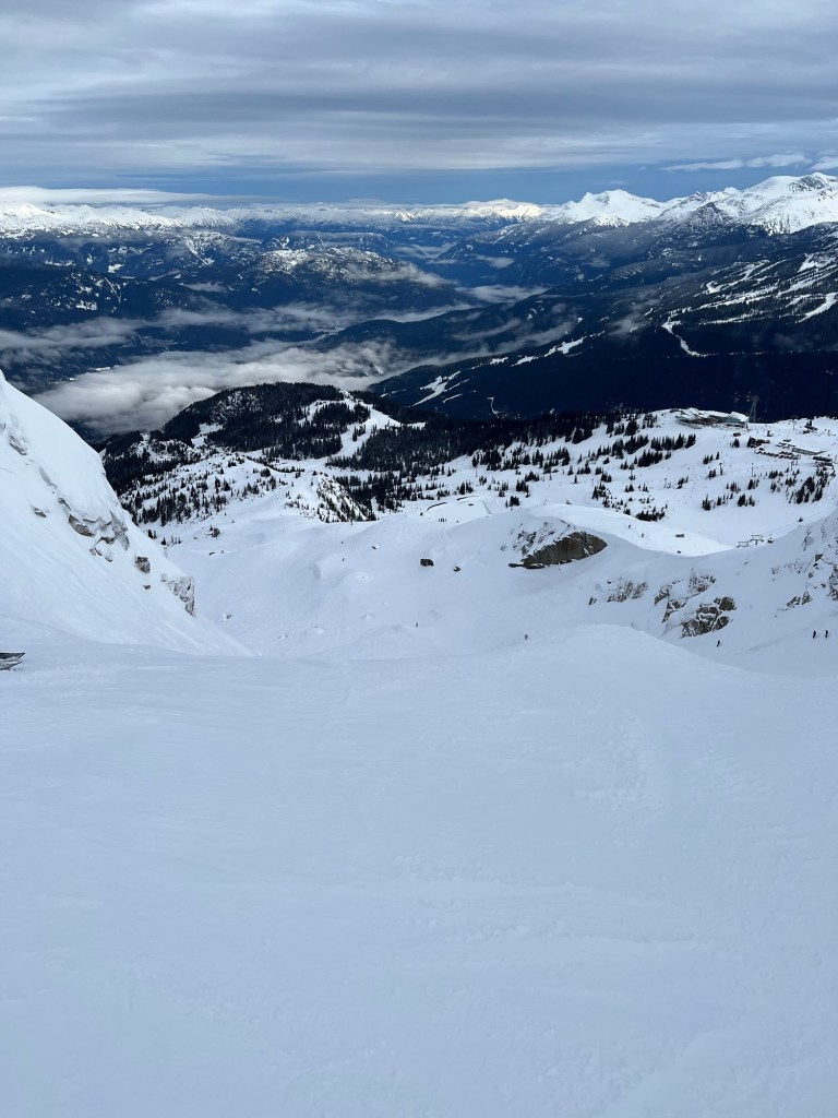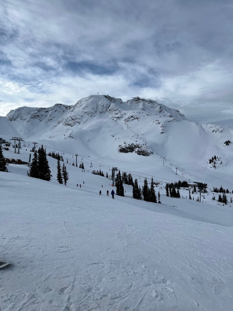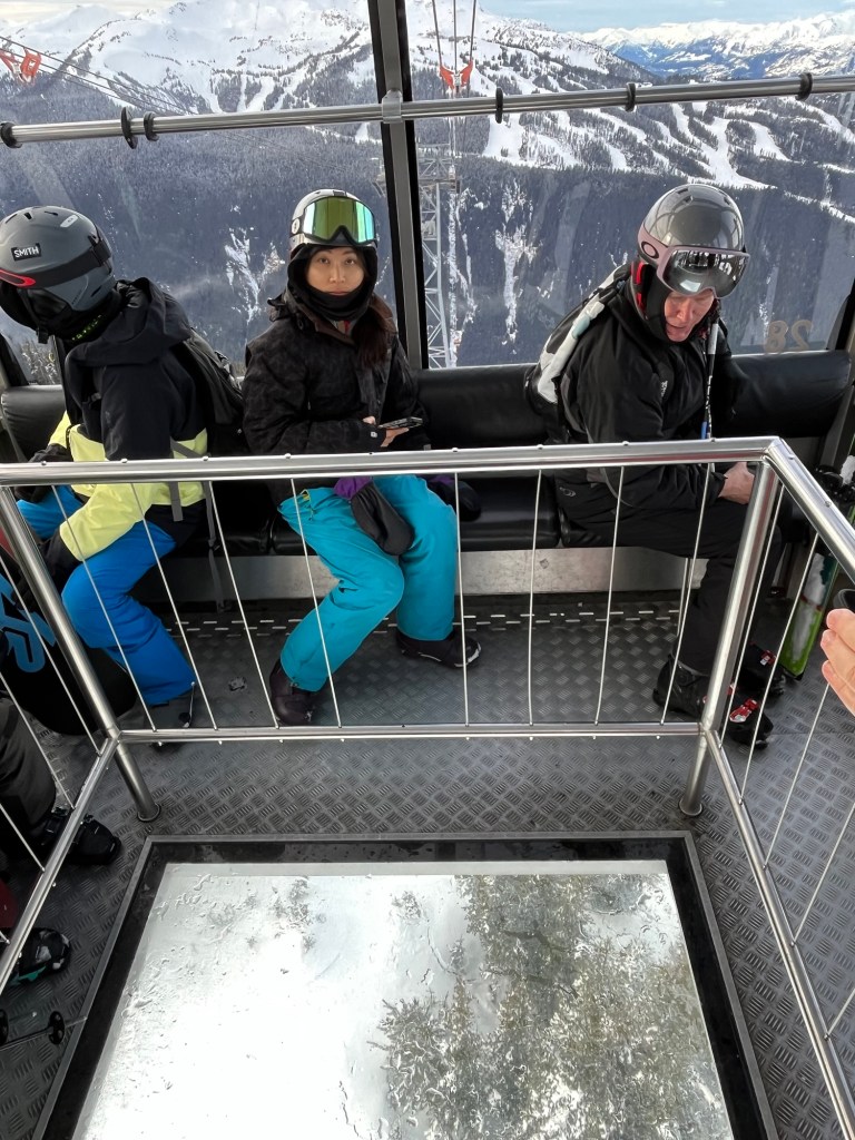 Spending the week – solo – in Whistler! World-class resort. Ski-in/ski-out hotel. There’s people but the few minutes spent waiting for the lift allows me to catch my breath. Spectacular scenery.